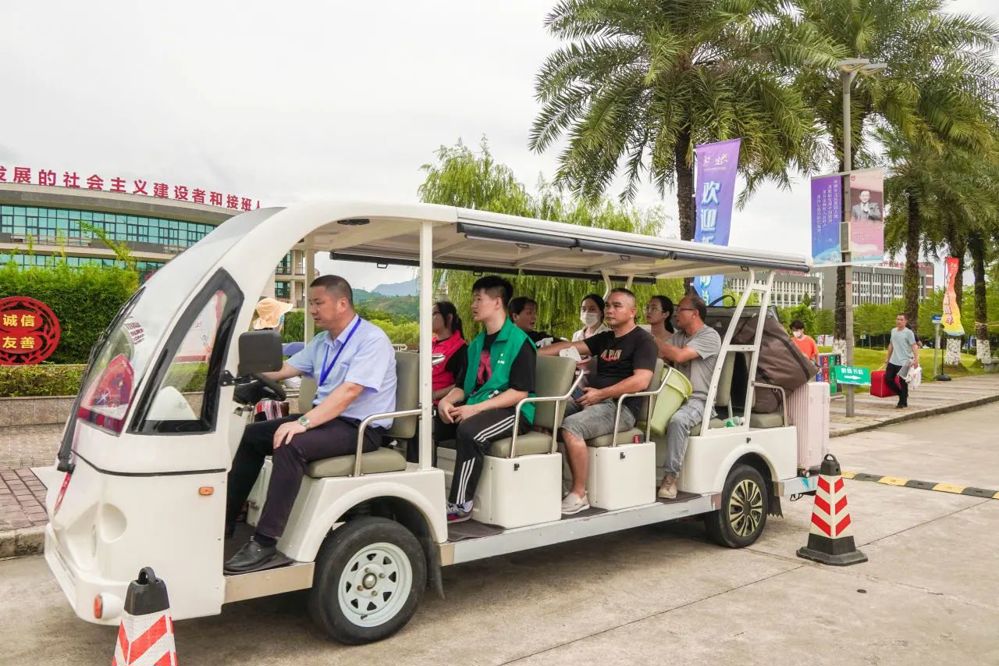 学校在各个路面节点,布置迎新氛围,设置新生报到接待服务点,安排了1000多名志愿者分布在各个迎新环节,指引新生入住报到。同时安排了校内接驳车,为远道而来的新生和家长,提供及时的行李搬运和免费的专车接送。