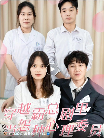 无独有偶,由广东省教育厅主办,旨在提升大学生心理健康意识与素养的2024年“5.25”大学生心理健康月系列活动作品评选结果正式揭晓。学校选送的作品《穿越霸总剧里当怨种心理委员》在“视说心语,频见真情”心理科普短视频类作品征集活动中荣获三等奖。