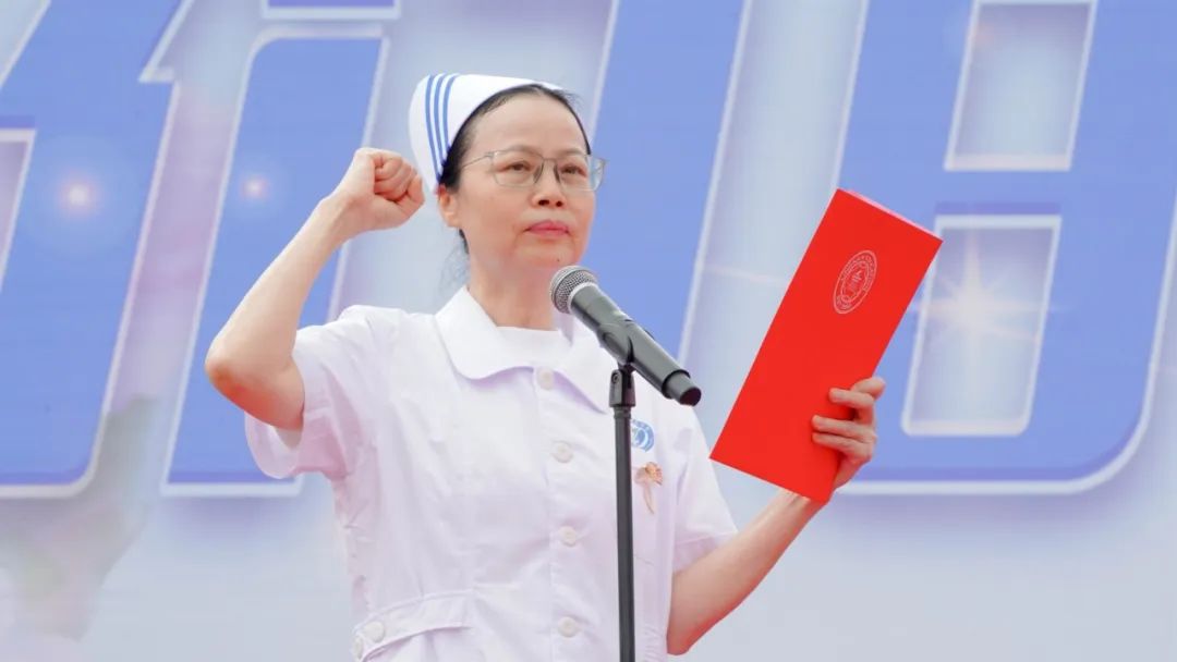 授帽仪式将整个庆典活动推向了高潮,伴随庄严的乐曲,校领导及护理前辈们为即将踏上实习征程的大二护理学子戴上圣洁的燕尾帽、送上祝福。在护理与健康学院钟玉红教授的领誓下庄严宣誓:“以救死扶伤为己任,践行南丁格尔誓言!”铿锵之声响彻会场,诠释着新一代护理人的初心与担当。