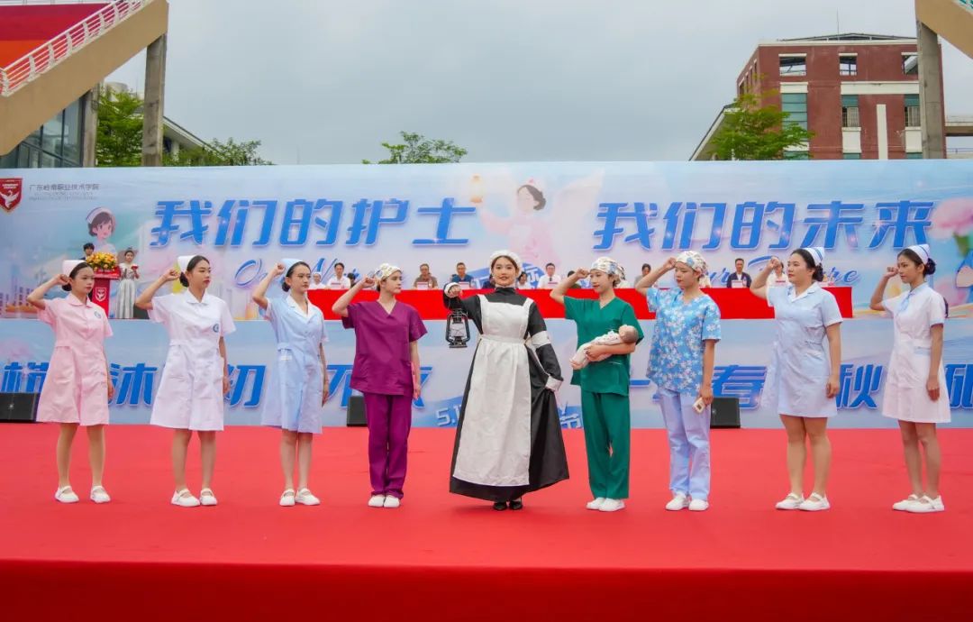在第114个国际护士节来临之际,为倡导、继承和弘扬“南丁格尔”精神,传承护理文化,培育优秀护理人才,2025年5月8日下午,广东岭南职业技术学院在清远校区足球场举办国际护士节庆典暨岭南护理专业十周年成果展活动。校长劳汉生,常务副校长李峻,副校长张爱国、徐萍,党委副书记、纪委书记李浩,副校长翟树芹,校长助理李锋、卜佳锐、辛增辉,清远市人民医院护理部主任陆惠慧、清远高新区医院副院长李俊,家长代表江华先生,各二级学院、书院负责人,相关职能部门负责同志,师生、校友代表齐聚一堂,共同回顾十年育人历程,致敬护理职业荣光。